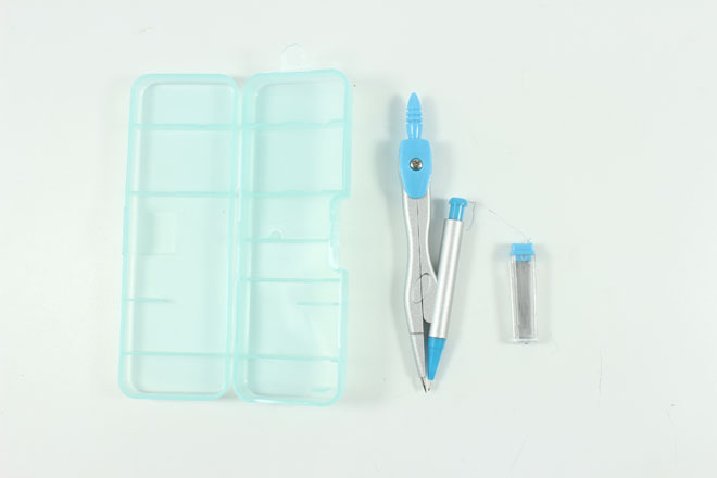 The compass with injury-proof needle,plastic grips and mechanical pencil, with self- centering mechanism, compass made of zinc die-casting,spray painting coating.