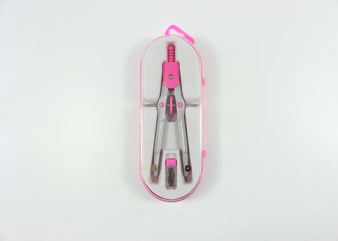 The compass with needle and pencil lead (with adjustable nut),plastic grip,with flexible sliding hinge mechanism,compass made of zinc die-casting,spray painting coating.