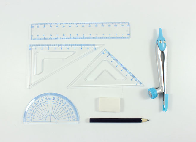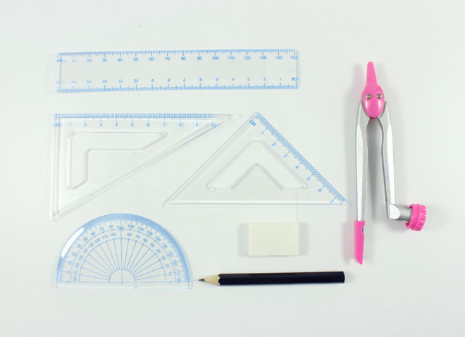 Geometry rulers includes 15 cm straight ruler, 2 x triangle rulers,1 x protractor, transparent and through it you can read conveniently.