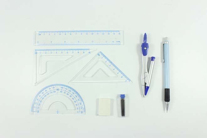 Geometry rulers includes 15 cm straight ruler£¬2 x triangle rulers,1 x protractor, transparent and through it you can read conveniently.