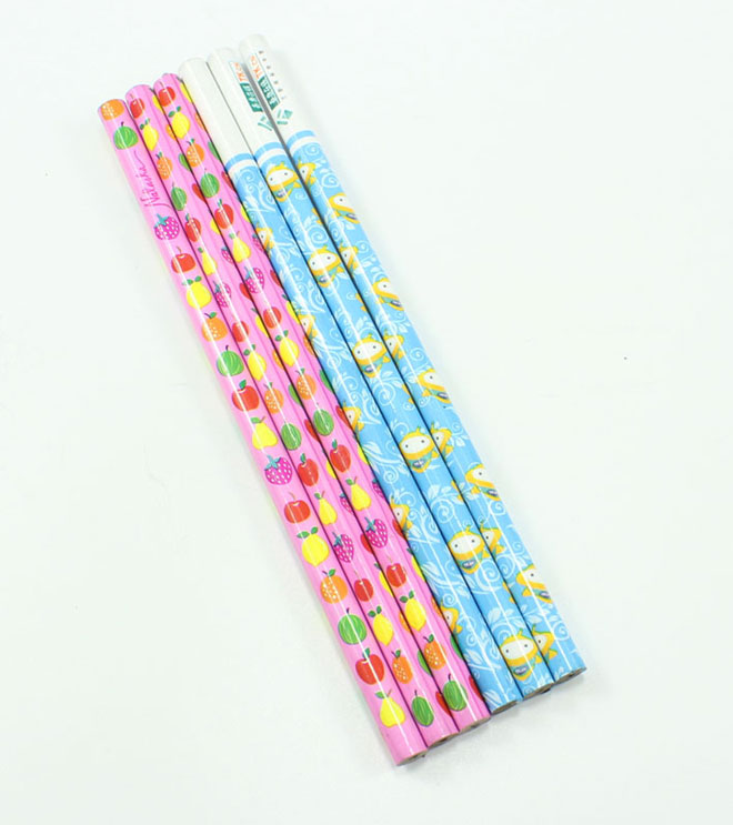 1.Item No: pencil-07 1.Type of Lead:HB 2.Color:Black and Blue 3.Length:6.5inch 4.Shape of head :Hexagonal and circular 5.Material: wooden 6.Packing : 12pcs/opp bag 7.Feature:1.good quality 2.nice to writing
