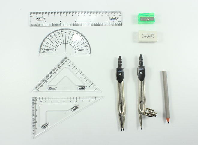 Geometry rulers includes 15 cm/ 6 inches straight ruler (inches and metric scale), 2 x triangle rulers,1 x protractor, transparent and through it you can read conveniently.