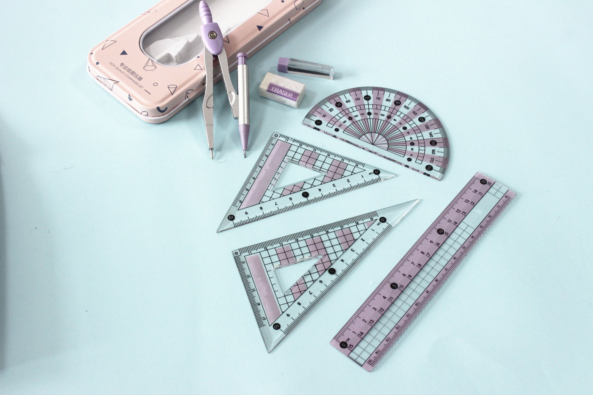 8 pcs mathematical set with transparent PVC material window